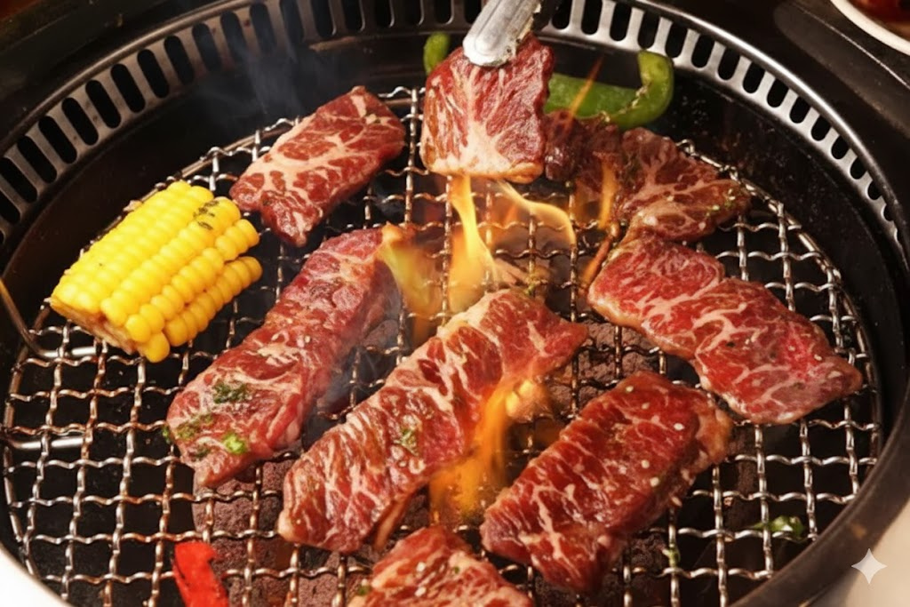 - Bước 3: Bạn có thể nướng thịt bằng chảo, khay gang nướng trên bếp than hay bếp ga.